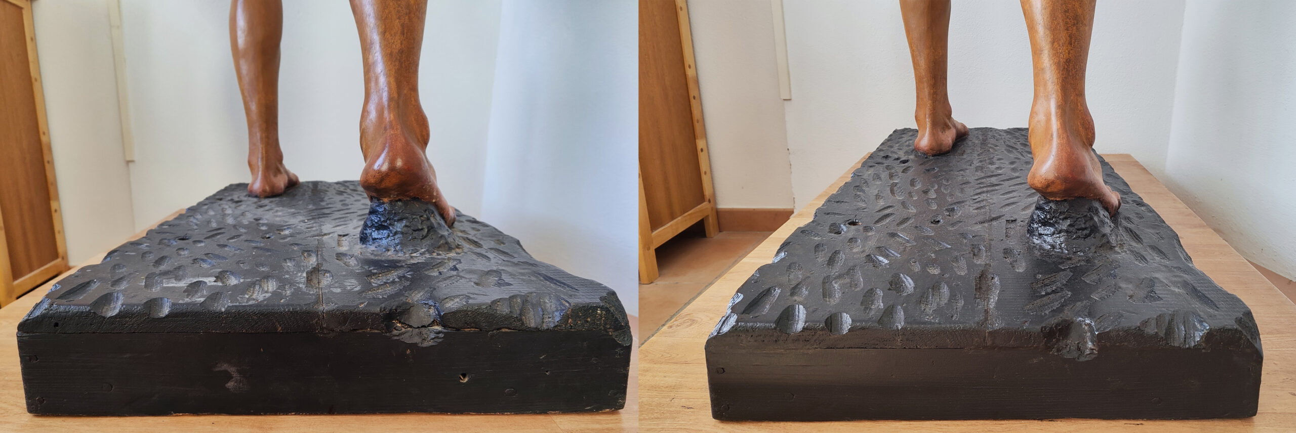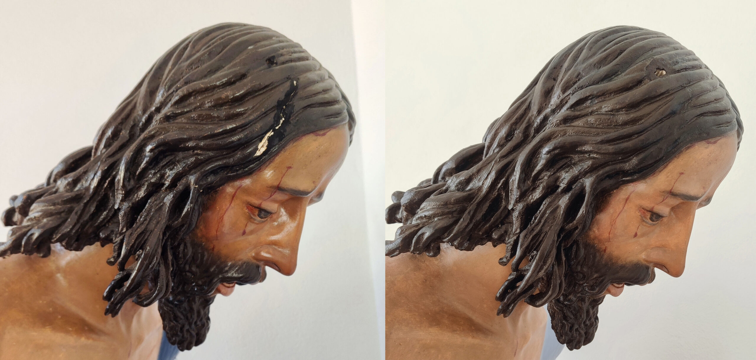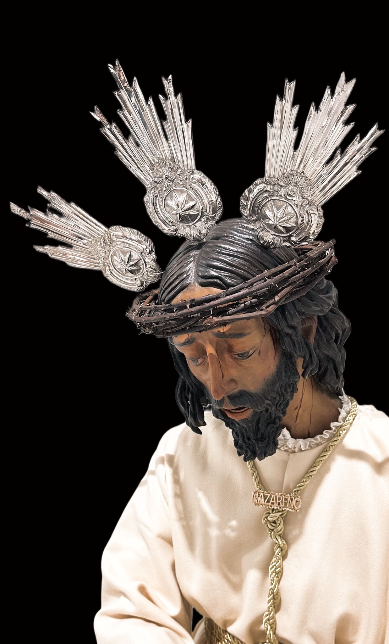 La primitiva imagen de Padre Jesús Nazareno de la localidad onubense de Calañas fue destruida durante la Guerra Civil española, no siendo hasta mediados del siglo XX, (probablemente entre finales de los años 40 y principios de los 50) cuando se encarga una nueva talla del Nazareno al escultor calañés Juan Manuel Naranjo Soltero. Este artista estudió en la Escuela de Artes y Oficios y Bellas Artes de Sevilla, donde en 1931 obtuvo premio en la modalidad de Anatomía artística y dibujo del natural en movimiento. Fue discípulo del escultor natural de Higuera de la Sierra, Sebastián Santos Rojas, siendo sus dos primeras imágenes la Virgen de los Dolores, (que en 1952 fue sustituida por una de Francisco Buiza) y Padre Jesús Nazareno, donadas a la parroquia de Calañas.