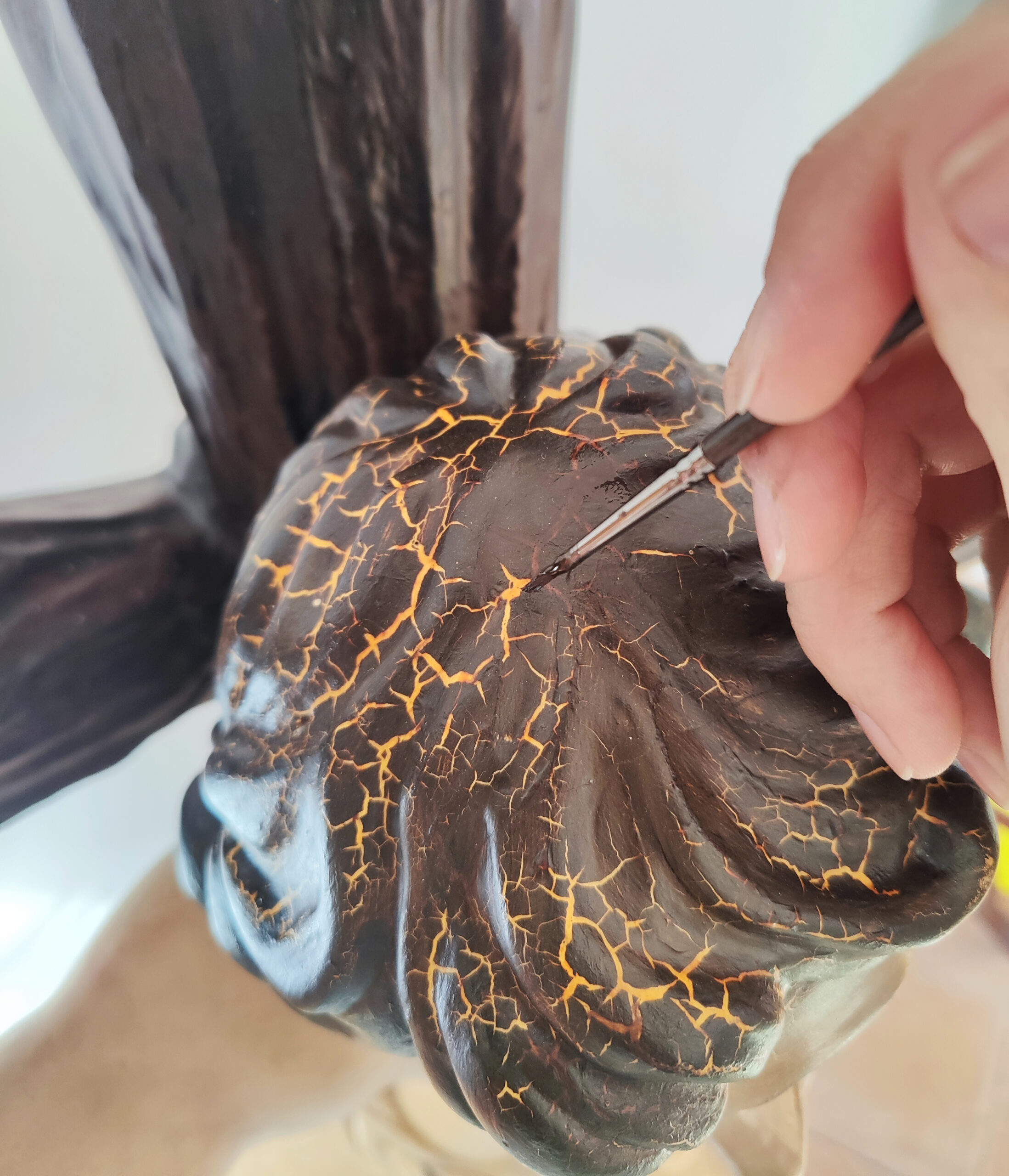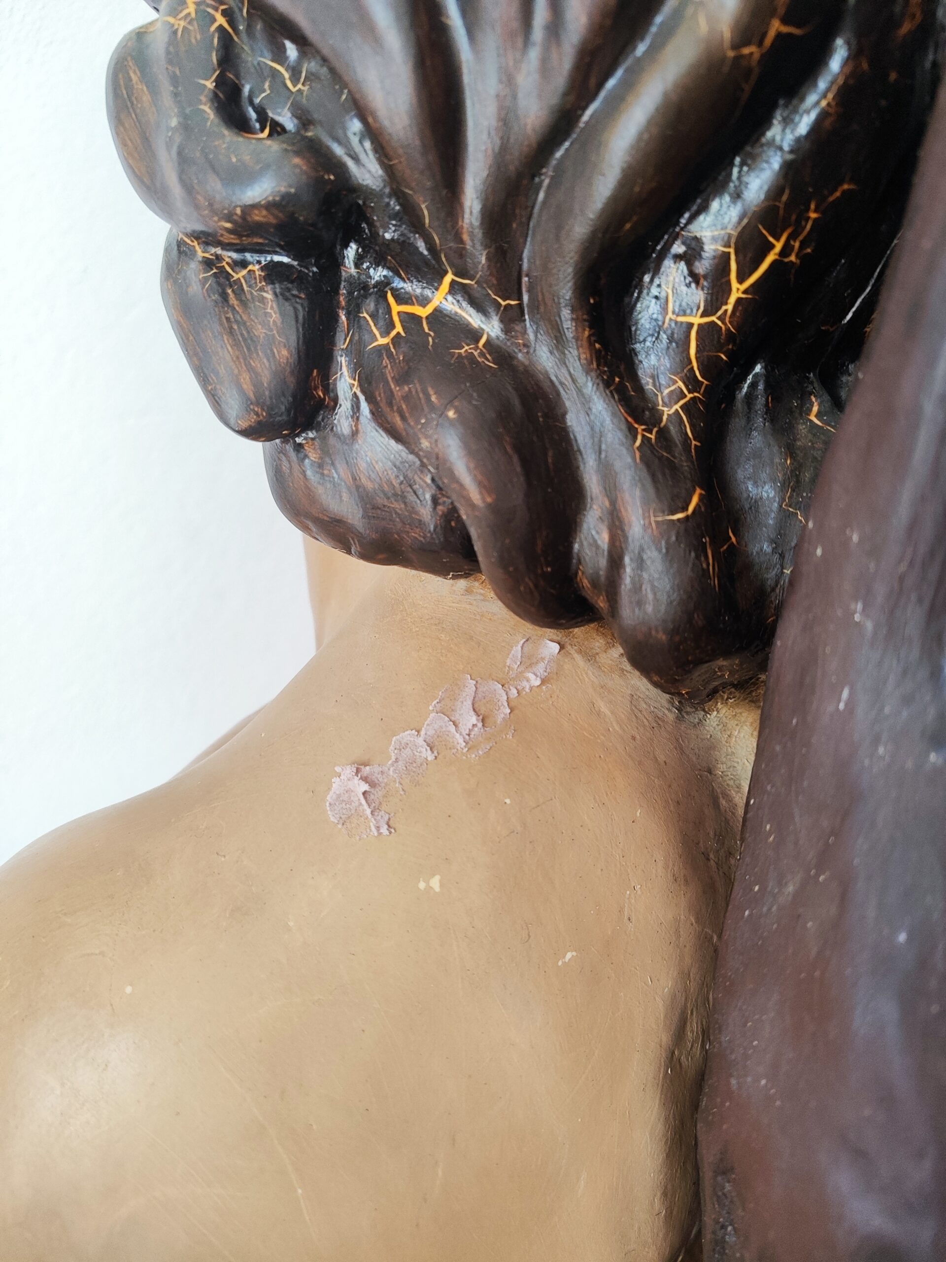 A la imagen le faltaba la falange del dedo meñique de su mano izquierda, por lo que se realizó una anastilosis.